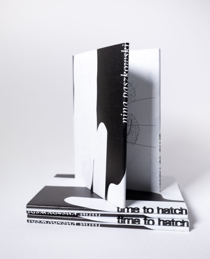 time to hatch is Nina’s first artist book and presents her daily drawing practice in a non-linear way. The book opens up from the middle and unfolds outwards, reminding of her sculptural work. The dust jacket is both map and glossary, on the inside of which all drawings are assembled in small. Made in collaboration with Amsterdam based designer Katherina Gorodynska and including a text by Xenia Alexandrovna.